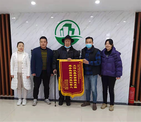 12月7日上午,居住在梨园小区的一位步履蹒跚的老人黄天才,将一面印有“工作认真负责精益求精,服务热情周到胜似亲人”的锦旗赠送市城控集团所属市保障房公司,表达对市保障房公司及全体工作人员的感激之情。