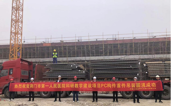 近日,荆门市第一人民医院科研教学建设项目PC构件首件吊装圆满成功,标志着该项目进入标准层施工阶段。