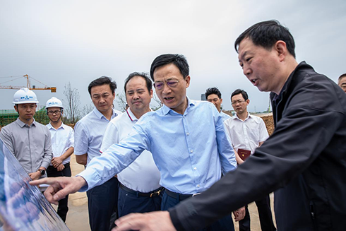 在项目现场,王祺扬一行实地察看了园区工程建设及周边配套基础设施建设推进情况,仔细询问了项目建设、景观绿化种植进展及项目推进中存在的困难等情况,并现场听取了关于园区功能布局、项目建设进度、后期运营思路的汇报。